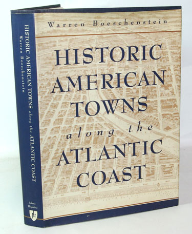 Boeschenstein, Warren:  Historic American Towns along the Atlantic Coast.  Baltimore: The Johns Hopkins University Press, (1999). First Edition, First Printing. Near fine in 1/4 blue cloth and blue paper covered boards with bright gilt text on the spine. A small quarto of 9 7/8 by 7 inches with the cloth at the ends of the spine very slightly faded. In a fine, unclipped (no price which is typical for a university press volume) dust jacket. 331 pages including an index, bibliography, chapter notes and text. Illustrated with maps, line drawings at chapter headings, images from black and white photographs/ The towns covered in this title include: Castine and Kennebunks' Port, Main; Edgartown, Mass.; Stonington, Conn.; Ocean Grove, NJ; New Castle, DE; Edenton, NC; Beaufort, SC; and, Saint Augustine, FL. A very clean and handsome volume with no prior ownership markings of any kind.