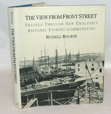 Bourne, Russell:  The View from Front Street: Travels Through New England's Historic Fishing Communities.  New York: W. W. Norton & Company, (1989). First Edition, First printing. Fine in light blue paper covered boards with bold gilt text stamping on the spine and with map end sheets. A small quarto measuring 10 by 8 1/2 inches. In a fine, unclipped dust jacket. 282 pages including an index, acknowledgments and text. Illustrated throughout with black and white photographs, line drawings and reproductions of earlier works of art.