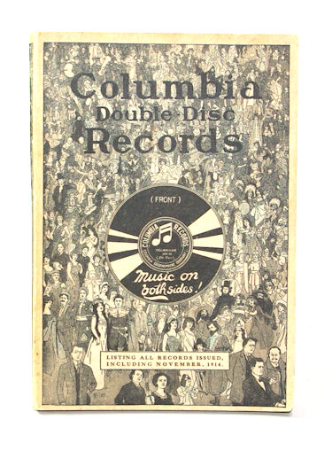 Columbia Records:  Columbia Double Disc Records Listing All Records Issued Including November 1914.  New York: Columbia Record Company, 1914. First Edition. Very good+ in heavy, printed paper wraps over a double staple binding. A 12mo of 7 1/4 by 5 inches with very little wear to the covers and no prior ownership markings of any kind. Without a dust jacket as issued. 428 pages of text. Illustrated with images from black and white photographs of the recording artists.