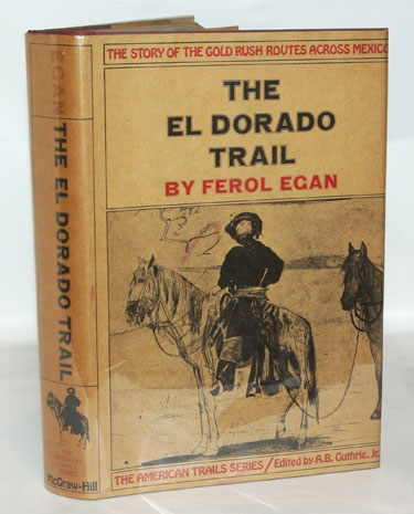 Egan, Ferol:  The El Dorado Trail.  New York: McGraw-Hill, 1970. First Edition, First Printing. Fine in dark red cloth covered boards with gilt text on the spine and front board. A small quarto of 9 by 6 inches. In a fine, unclipped dust jacket. The 9th volume in the American Trails Series. The history of the gold rush trails across Mexico to California. 313 pages including an index.