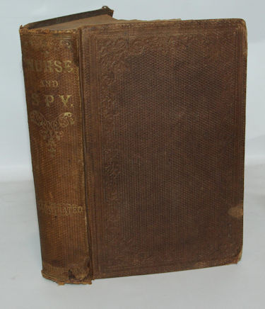 Edmonds, Emma E.:  Nurse and Spy in the Union Army.  Hartford: W. S. Williams & Co., 1865. First Trade Edition. Very good in decorated brown cloth covered boards with blind embossing on the front and rear boards with slightly faded gilt text stamping on the spine with the cloth worn through at the head and heel of the spine and with wear to the rear joint and with moderate foxing to the preliminaries. The hinges remain tight and strong. 384 pages of text with the frontispiece of the author missing and eight wood and steel engravings. "A sensational account of a woman in the front lines...." (Nevins II, 125)
