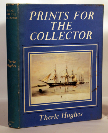 Hughes, Therle:  Prints For The Collector British Prints from 1500 to 1900.  New York: Praeger Publishers, 1971. First Edition, First printing. Very good+ in royal blue cloth covered boards wilth gilt text stamping on the spine and on the front board. The cloth on the boards and spine is speckled with white spots producing on this blue background an effect similar to bright stars on a cloudless night. The top edge of the text block shows minor foxing. The contents are otherwise fine. In a very good+, unclipped dust jacket with wear and rubbing at the ends of the spine area and over the tips of the boards and with a 1" closed tear at the upper edge of the rear panel. 216 pages including an index, a glossary of engravers and text. Illustrated with four color plates and 48 black and white plates.