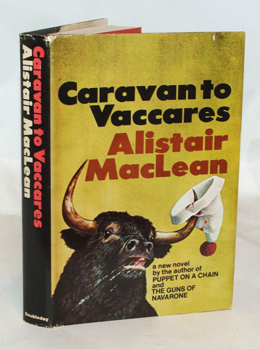 MadLean, Alistair:  Caravan to Vaccares.  Garden City: Doubleday & Comany, Inc., 1970. Reprint. Near fine in black cloth covered boards with red text on the spine and front board. In a very good+, price clipped dust jacket with light wear and short closed tears to the ends of the spine area and with a one inch closed tear to the rear panel. 259 pages of text.