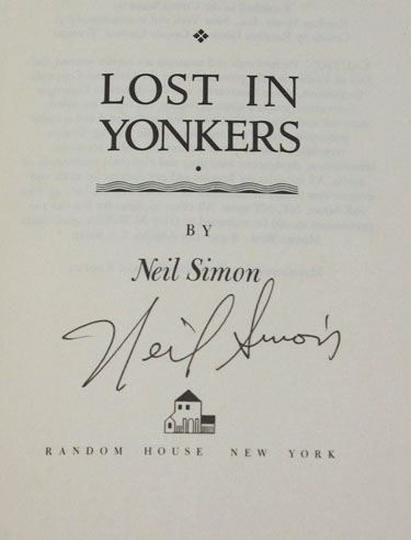 Simon, Neil:  The Play Goes On.  New York: Simon & Schuster, (1999). First Edition, First Printing. Fine in /14 black cloth and yellow paper covered boards with silver colored text stamping on the spine. A small quarto of 9 1/8 by 6 inches. In a fine, unclipped dust jacket. Signed by the author with an inscription "To Carolyn and Kent" on the title page. 348 pages including an index and text. Illustrated with a section of images from black and white photographs.
