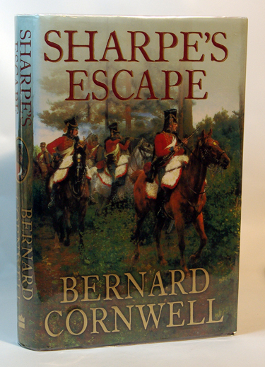 Cornwell, Bernard:  Sharpe's Escape.  London: HarperCollins Pub., 2004. First Edition. Fine in red paper covered boards with gilt text stamping on the spine with small spots of foxing to the top edge of the text block. In a fine dust jacket with the price intact on the front flap. Signed by the author on the title page. The 20th volume in the Sharpe's series which occurs in Portugal during the Bussaco Champaign of 1810. 351 pages of text illustrated with a map.