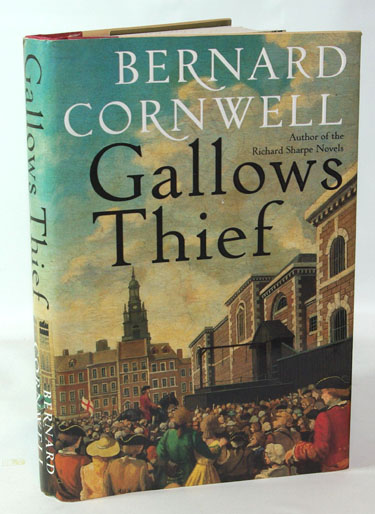 Cornwell, Bernard:  Gallows Thief.  New York: HarperCollins, 2002. First Edition. Fine in red and tan paper covered boards with gilt text stamping on the spine. In a fine dust jacket with the price intact on the front flap. Signed and humorously inscribed and signed by the author on the title page An historical fiction novel which takes place in England at the close of the Napoleonic Wars. 297 pages.