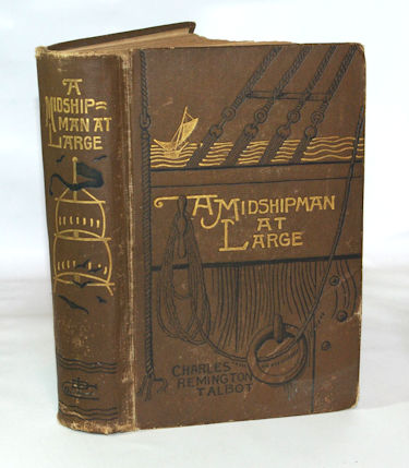 Talbot, Charles Remington :  A Midshipmand At Large A Story of Newport And Ocean Yachting.  Boston: D. Lothrop Company, (1887). First Edition, 35.00. Good in worn brown cloth covered boards with gilt text and gilt and black decorations on the spine and with the same on the front board. A 12mo of 7 by 4 1/2 inches with rubbing to the cloth at the ends of the spine and to the tips of the boards and the fore edges of the boards. There is also a sever lean to the spine and the cloth is worn through over the lower tips of the boards and the rear hinge is broken, but holding. Without a dust jacket. 394 pages of text followed by an eight page (viii) section titled "The School of Home" and six pages of ads from the publisher.