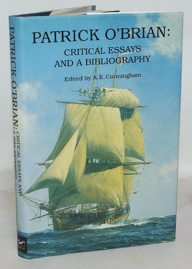 O'Brian, Patrick:  Patrick O'Brian: Critical Essays and a Bibliography.  New York: W. W. Norton, 1994. First Edition. Fine in dark blue cloth covered boards with gilt text stamping on the spine with minor dust staining to the top edge of the text block. An octavo measuring 9" by 6" with the "erratum" slip laid-in at the front of the book. In a fine dust jacket with the price intact on the front flap. Edited by A. E. Cunningham. Numerous essays by critics, historians and admirers including Charlton Heston as well as a thorough bibliography.