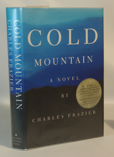 Frazier, Charles:  Cold Mountain.  New York: Atlantic Monthly Press, 1997. First Edition. Fine in 1/4 black cloth and paper covered boards with copper colored text stamping on spine. An octavo measuring 9" by 6" with a prior owner's name at the upper edge of the first free end page. In a fine un-clipped dust jacket. The jacket is the first state jacket with quote by John Berendt on the silver colored seal on the front panel. With the misprint "man-woman" instead of "mad-woman" on line 16, page 25. A book which has been compared to Hemingway's A Farewell To Arms. Some reviews even claimed it to be the novel of the century. The book quickly went to a seventh printing within two months of its release. It eventually became the winner of the 1997 National Book Award. 356 pages of text with map end sheets.