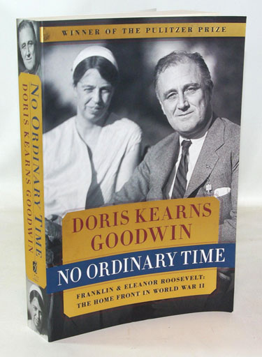 Goodwin, Doris Kearns:  No Ordinary Time Franklin and Eleanor Roosevelt: The Home Front in World War II.  New York: Simon & Schuster Paperbacks, (1994). 40th Printing. Fine in heavy printed paper wraps over an adhesive binding. A small quarto of 9 1/4 by 6 inches. Without a dust jacket as issued. 759 pages including an index, acknowledgments, bibliography, chapter notes and text. Illustrated from black and white photographs in two sections within the book. Goodwin won the Pulitzer Prize for History in 1995 for this title.